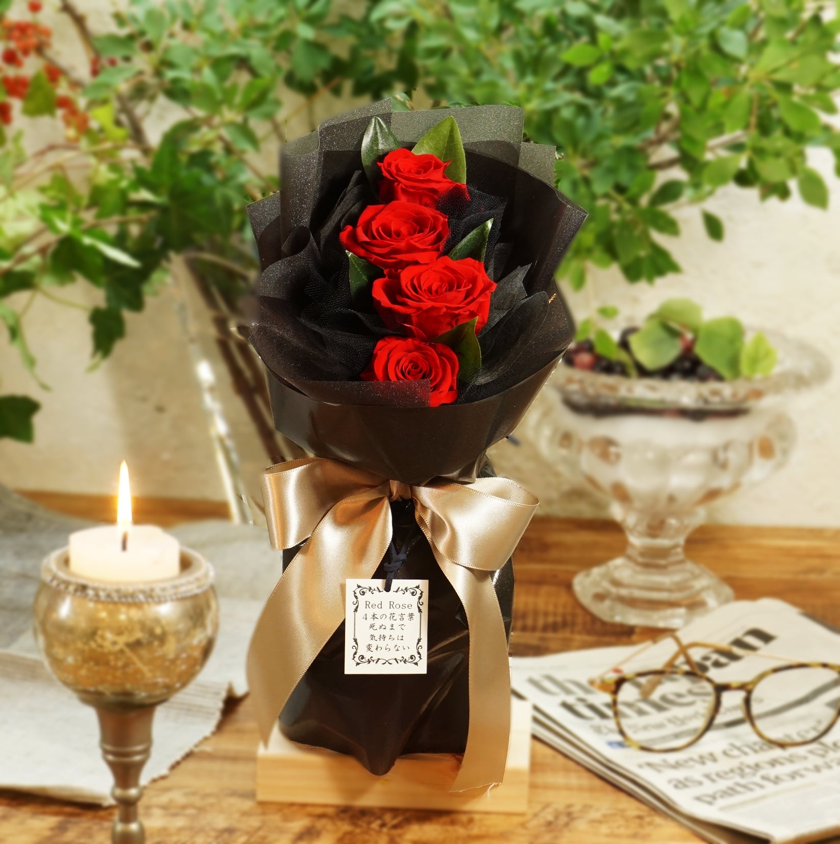 花言葉TAG無料!!枯れない花 赤バラ プリザーブドフラワー 花言葉 プロポーズ 誕生日 記念日 告白 4周年 プレゼント 結婚記念日 ギフト 枯れないお花!赤バラ4本のプリザーブドフラワー